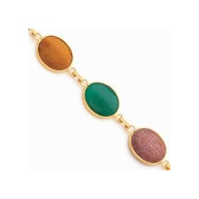 14k 7 5 Stone Scarab Bracelet - JewelryWeb: Jewelry. 14k 7 5 Stone Scarab Bracelet - 6.3 Grams in 14k Yellow Gold - Product Attributes: - Black Onyx - Blue Onyx - Epidote - Green Onyx - Rhodonite - Polished - Open back - Genuine - Aventurine - Carnelian - Tigers eye - JewelryWeb Style: QTB45141Y - FREE gift-ready jewelry box.