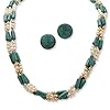 2-Piece Simulated Turquoise Necklace and Pierced Earring Set: Jewelry. Goldtone accents. Twisted strands of simulated pearls and lucite beads create an exotic look. This lovely three-strand necklace with matching pierced earrings is a set you must have. Necklace is 24 inch length.