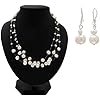 18 inch Black 3-String Genuine Freshwater Pearl Necklace Earrings Set: Jewelry