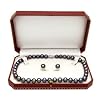 14k White Gold 6.5-7.0mm Black Akoya Saltwater Cultured Pearl Necklace AA+ Quality, 18 Inch Princess, Color Enhanced