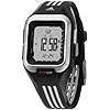 Adidas Mens Reponse Light XL LCD Digital Sports Watch ADP3014: Adidas: Watches. Tang clasp. Polyurethane case with a black and white polyurethane ventalted bracelet. Fixed black silver-tone bezel with adidas logo. LCD dial displaying: hours, minutes, seconds, am/pm, day and date. Additional functions: 50 lap memory, shadow race mode, timer, interval timer and two alarms. Digital quartz movement. Solar powered. Scratch resistant mineral crystal. Stainless steel case back. Case diameter: 50.50 mm. Case thickness: 15 mm. Water resistant at 100 meters / 330 feet.