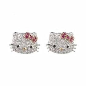 Adorable Silver Plated Hello Kitty Crystal CZ Stud Celebrity Teen Earrings With Pink Bow: Glam and Gloria: Jewelry. These sparkly earrings are custom made and complemented with a great assortment of CZ Diamonds. Worn by many celebrities, these irresistible Hello Kitty ear studs sparkle with brilliant CZ Diamonds. Celebrate your lifestyle with these absolutely adorable shimmering silver plated Hello Kitty ear studs. Black Czs form the eyes and the vivid pink bow adds a flash of color.
