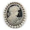 18k Gold Agate Stone Cameo Pin Pendant Italian: Jewelry. No two cameos are alike and this cameo can become either a unique addition to collection, or a perfect gift. Beautiful, Romantica, Italian Handcrafted, 18k Gold Framed, Lady with Flowers, Agate Stone, Cameo Pin Pendant. The classical elegant beauty of this cameo pin pendant strikes the viewers eyes immediately. Fashioned of genuine agate stone and hand crafted by skilled Italian Master Artisans the cameo comes in a delicately hand made 18k gold filigree rope frame. The cameo measures 32 x 25 mm (a little more than 1.25 x 1 inch) from top to bottom, and left to right. The agate stone, originally black and white, appears blue after the delicate, laser bas relief carving. Outstanding value.