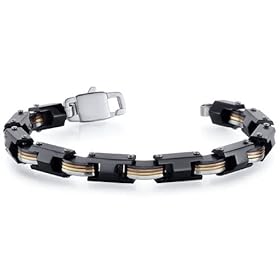 Alluring Strength: Multi-Tone Stainless Steel Hexagon Link Mens Bracelet: peora: Jewelry. Perfect Gift for Christmas, Birthday, Fathers Day, Graduation Gift or just about any occasion. An intricate construction in gleaming Black Ceramic and Toned Stainless Steel accentuates the strength and exclusivity of this piece. This versatile bracelet is a classic style that is sure to become a great basic for everyday wear. Any occasion and every ensemble will get a dash of fresh verve when you wear this season-must-have. The easy-to-wear Lobster Claw clasp completes the look with a secure and comfortable fit. The bracelet measures 8 3/4 inches in length and is approximately 3/8 inch in width. Includes a Designer Gift Box.