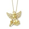 Angel of Perseverance Gold Vermeil Necklace: Jewelry. It has a polished finish and is 18 inches long with a spring ring clasp. This Angel necklace is crafted from gold-plated sterling silver and cubic zirconia. Pendant measures 1 1/8 inch x 3/4.