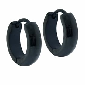 Black Anodized Stainless Steel Huggie Hoop Earrings 9mm (.35in Diameter): Jewelry. Sleek Black Steel Hoop Earrings, Made of L316 Stainless Steel.