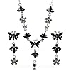 Aquamarine Teardrop Rhinestone SWAROVSKI CRYSTALS Flower Silver Necklace And Earring Jewelry Set: Jewelry