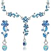 Aquamarine Teardrop Rhinestone SWAROVSKI CRYSTALS Flower Silver Necklace And Earring Jewelry Set: Jewelry.