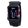 Armitron Mens 408177RED Chronograph Black and Red Digital Sport Watch: Watches. A durable mineral window shields the digital black dial, which features the time along with a day and date display. The Armitron Men's Chronograph Black and Red Digital Sport Watch is a versatile athletic accessory featuring a sleek black design as well as lap, countdown, and dual alarm functions. Designed with a lightweight black resin case, the watch includes a rectangular resin bezel and a black perforated resin wristband secured with a buckle clasp. Four red side buttons control the dual alarm, chronograph, lap, and countdown functions, as well as switch the display to military time.