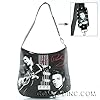 Metallic Elvis Guitar Bag: Clothing. The inside is lined with fabric with a zipped pocket and two additional pockets for smaller items. This flashy Elvis bag is very unique! It is made out of metallic PU material and the front has a picture of Elvis printed on it, and rhinestones surrounding him. The front also has Elvis's name on a metal cut out with rhinestones on top. The strap has Elvis Presley printed across it, and a picture of Elvis surrounded by studded detailing. This bag has a top zip closure to secure your belongings. The dimensions are 13 inch X 2 inch X 14 inch with a 21 inch shoulder drop.