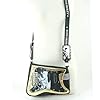 Zebra Elvis Guitar Bag: Clothing. The inside is lined with fabric with a zipped pocket and two additional pockets for smaller items. This wild Elvis bag is very unique! It is made out of faux leather and velour material. The front and back have zebra print covering it with rhinestones on the front. The front also has Elvis's name on a metal cut out with rhinestones on top. The strap has Elvis Presley printed across it, and a picture of Elvis surrounded by studded detailing. This bag has a top zip closure to secure your belongings. The dimensions are 13 inch X 2 inch X 14 inch with a 21 inch shoulder drop.