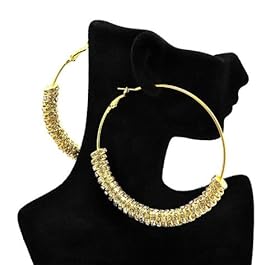 Basketball Wives POParazzi Inspired Ring Earrings IER2011 Gold 83mm: Jewelry. 83mm Large Hoop Earrings,Stone Rings Accent, PaParazzi Earrings,Nickel Free,Lead Free,Diameter of Earrings: 83mm.