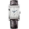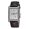 Baume & Mercier Mens 8818 Hampton Automatic Watch: Baume et Mercier: Watches. Silver-tone Arabic numerals mark three and nine o'clock, and baton indexes represent the remaining hours. Unique details and a stylish design define the Men's Hampton Automatic Watch from reliable manufacturer Baume & Mercier. The rectangular, silver dial features a linear guilloche pattern, contrasting blued steel hands, and an innovative skeleton window at 12 o'clock. The elongated and slightly tapered stainless steel bezel frames the intricate dial and reaches out to hold the warm-toned, dark-brown alligator strap with detail stitching.