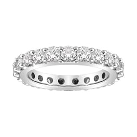 18k White Gold Bead-Set Diamond Eternity Ring (3.00 cttw, G-H Color, SI1-SI2 Clarity), Size 6: Jewelry. The very-good-cut diamonds are near colorless and nearly flawless to the eye for a stunning, sparkling beauty. The Bead-Set Diamond Eternity Ring is a truly breathtaking piece of jewelry. The band and settings are made of fine 18k white gold that boasts considerable luster. The 16 captivating stones total an impressive 3 carats and are set amongst tiny, white-gold beads for a flush, full look. This ring makes for an absolutely lavish engagement band or simply an exquisite gift to someone for whom you care deeply.