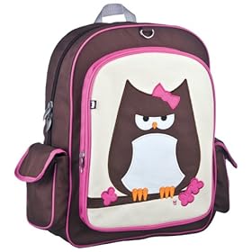 Beatrix New York Big Kid Papar the Owl Backpack (Ages 5-10): Baby. PVC free, lead free, and phthalate free. Big enough to hold textbooks, lunch, a laptop, & more. These durable nylon packs have a large interior space with a smaller interior pocket. Exterior has a large front pocket and two side pockets. Padded back panel and shoulder straps. Sized for ages 5 to 10.