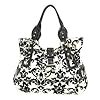 Belted Rhinestone Buckle Velvet Coated Damask Print Purse Black White: Clothing. Size : 14.5w x 10h x 4d in.