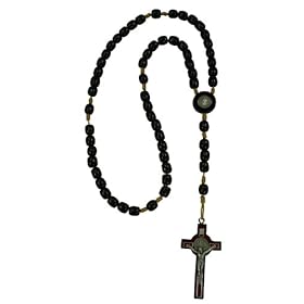 Mens St. Benedict Black Solid Wood Rosary- Made in Brazil