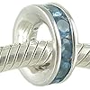 March Birthstone Channel Set Aquamarine CZ and 925 Sterling Silver Spacer Bead fits European Charm Bracelet: Jewelry. Aquamarine is the birthstone for the month of March. This unthreaded bead slides easily onto your bracelet, adding a bit of color between larger beads. Compatible with most major brand sterling silver 3mm Cable European Charm Bead Bracelets. Channel-set round cut Aquamarine colored cubic zirconias line this elegant .925 sterling silver Eternity style spacer bead.