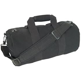Black Canvas Shoulder Duffle Roll Bag - 12 x 24 Travel/Recreational Carry Bag: Sports & Outdoors. High Quality And Made To Last. Duffel Bag. Folds Easily. Large Main Compartment, End Pocket. Detachable Shoulder Strap, Padded Handles. Great to Carry Books, Folders, Food, Gym Clothes, ETC. Replica Army, Military, Police & Security Type. Many People Use This Item For School, Working Out, Gym Bag, Camping, Fishing, Hunting, Work, Back Packing, Biking Traveling. Not Limited to These. For Both Men and Women.