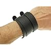 Black Distressed Leather Gothic Cross Wristband: Clothing. The wrist band is 1 1/2 inches wide, has a double snap clasp, and is adjustable from 7 to 8 1/2 inches.This wrist band makes a great gift for surfers, punk rockers and skaters. This black bonded leather wrist band features 2 matte finished metal Gothic crosses.