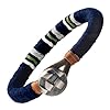 Mens Black Leather Braided Bracelet 316L Surgical Steel Blue: Jewelry