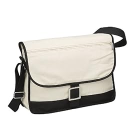 Black/natural Canvas Messenger Bag: Office Products. Made of 100% natural cotton, it boasts a full organizer beneath the front flap to store a phone, cards and pens, with an additional zip pocket for change, and a spacious interior. This modern messenger is an eco-cool choice for the environmentally conscious consumer.