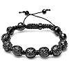 Jet Black Jesus Cross Pendant + 36 inch Jet Black Shamballa Beaded Rosary with Mary Charm