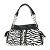 Black & White Zebra Print Rhinestone Fleur De Lis Satchel Purse