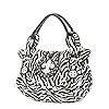 Black & White Zebra Print Rhinestone Fleur De Lis Satchel Purse: Clothing