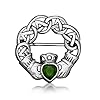 Bling Jewelry Sterling Silver Irish Celtic Claddagh Brooch Pin with Red Ruby Color Heart CZ