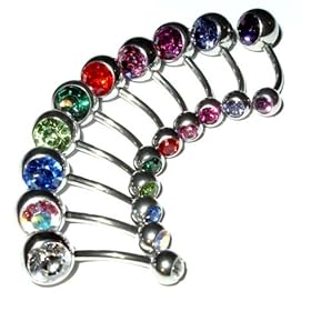 Body Colorz™ Lot of 10 Double Jeweled Gem Belly Navel Rings 14g 7/16: Jewelry. Set of 10 Body Colorz™ brand double gem jeweled belly rings (no duplicate colors).