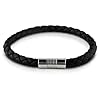 Braided Black Leather Mens Bracelet 6 mm 8 1/2 inches with Locking Stainless Steel Clasp
