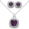 Breathtaking & Vibrant 1.75 carats Radiant Cut Amethyst Pendant Earrings Set in Sterling Silver Rhodium Finish: Peora: Jewelry. Earrings & Pendant have a total weight of 8.70 grams and are set in pure .925 Sterling Silver Rhodium Finish. 1.75 carats Radiant Cut Amethyst Pendant Earrings Set in Sterling Silver Rhodium Finish Earrings: Amethyst : 2 pieces, Radiant Cut, 6x4 mm. White Cubic Zirconia: 32 pieces, Round Shape 1.20 mm Dimension : 1/2 x 3/8 inch. Pendant: Amethyst : 1 piece, Radiant Cut, 7x5 mm. White Cubic Zirconia: 42 pieces, Round Shape 1.50 mm Dimension : 7/8 x 3/8 inch. From our Couture Collection, Set features one of a kind inch design with a beautiful White Gold inch finish featuring Gemstones with a gorgeous deep rich color, vibrant luster and clean clarity.