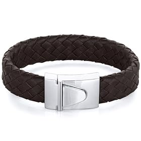 Mens Buckle Style Brown Woven Leather Bracelet: peora: Jewelry. Measures 8.4 inches in length and 5/8 inch in width. Update your wardrobe with a comfortable, durable bracelet featuring a Brown flat woven leather strap accentuated by a Polished Stainless Steel Buckle. Its effortlessly cool and casual design makes it perfect for everyday wear. In addition to the genuine leather band, this original piece also features an easy-to-wear unique buckle clasp made of stainless steel to ensure a secure and sophisticated fit. Includes a Designer Gift Box.