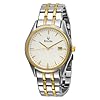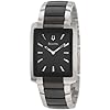 Bulova Mens 98B123 Bracelet White Dial Watch: Bulova: Watches. A white sunburst dial displays gold-tone bar hour indicators and a Bulova logo at the 12 o'clock. Simple yet elegant, the clean design of the Bulova Men's Bracelet White Dial Watch features thoughtfully placed gold-tone accents that bring out the beauty of this stainless steel watch. A stainless steel band is threaded with dual gold-tone accent stripes through its center that complement a rectangular, stainless steel bezel's gold-tone inner frame. Gold-tone hands and a date window at the three o'clock position complete this fine timepiece.