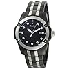 Bulova Mens 98B126 Black Dial Bracelet Watch: Bulova: Watches. The gently curved, black stainless steel case extends gracefully to meet the black stainless steel bracelet with complementary silver-tone inserts. Dual tones and a distinguished look define the Men's Black Dial Bracelet Watch from well-known designer Bulova. Offsetting the bold, black dial, silver-tone baton indexes match the wide, silver-tone hands and the details on the bracelet. Luminous accents on the hands and hour markers make it easy to tell time day or night. Reliable Japanese-quartz movement powers this sophisticated watch, and a convenient date display at three o'clock offers increased functionality.
