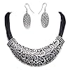 Fancy Chunky Burnished Tri Tone Flowers Vintage Style Metal Decor Flower Statement Bib Necklace and Earrings Set Elegant Trendy Floral Fashion Jewelry: Jewelry. Matching earrings feature wire hooks for pierced ears and are 1.5 inches long. This beautiful set features delightful flowers in burnished colors of silvertone, goldtone and coppertone accented with clear crystals. Necklace has a 1.5 inch drop and measures 16 inches in length with a 3 inch extender. Your set will come to you in a lovely velvet pouch and makes a fabulous gift or treat for yourself.