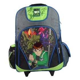 Cartoon Network Ben 10 Wheeled Backpack - Black Hole 15in Ben 10 Rolling Backpack: Office Products. Includes: side pockets for convenient organization, zipper front pocket(s) and smooth rolling luggage style wheels and adjustable, durable padded shoulder straps that tuck away. This kid's size, large, rolling backpack has a telescope handle that raises 13 inch from the top which makes it easy to maneuver. Easy to clean and maintain.