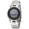Casio Mens AW80D-7A Sports Chronograph Alarm 10-Year Battery Databank Watch: Casio: Watches. Other timekeeping features include four daily alarms (with one snooze alarm), hourly time signal (which can be turned off), and 12/24-hour formats. A great choice for globetrotters, this stylish Casio analog-digital stainless steel watch for men combines the timeless look of an analog watch with the functionality of a digital watch. The round watch case has a raised bezel that frames the silvery blue dial, which includes a full Arabic numeral display and luminous dagger-style hands. A digital window sits above 6 o'clock displays time from a second time zone, thanks to the integrated world time function with 29 time zones (30 cities). You can also store short notes on the 30-page databank (with 8 letters and 6 numerals per page). The watch includes a stopwatch that can time events down to 1/100 of a second, and features a 24-hour capacity, split time, and 1st-2nd place times, as well as a countdown timer with a 24-hour capacity. This watch also offers a ±30-second accuracy per month, Afterglow backlighting, Auto Calendar (pre-programmed until the year 2039), and water resistance to 165 feet (50 M) -- offering protection from accidental splashes as well suitable for swimming, snorkeling, and light recreational diving.