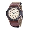 Casio Mens AW80V-5BV World Time DataBank 10-Year-Battery Watch: Casio: Watches. Both the 38-millimeter case and stationary bezel are made of high-quality stainless steel, and a nylon band is accompanied by a durable buckle clasp. Designed to accommodate your traveling needs, the Casio Men's World Time Data Bank 10-Year-Battery Watch #AW80V-5BV features a striking cream dial face, which is protected by a sturdy mineral dial window. Stand-out Arabic numerals provide at-a-glance readability, and a surrounding ring of detailed indexes and Arabic numerals ensure precision. Other innovative features include a handy 24-hour display, a 30-page databank, a dual time-zone function, and a digital band that clearly indicates the day, date, and month. Offsetting your look with a rugged twist, this handsome timepiece embodies your adventurous spirit.