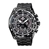 Casio Edifice Black Label Collection EFX530P-1AV: Edifice: Watches. Screw-down crown and case-back. The Black Label Edifice collection. Gunmetal and black stainless steel case measures 48mm diameter by 12mm thick. Black plastic resin strap has a convenient stainless steel buckle. The luminous black hands and hour markers contrast well with the patterned dial. Chronograph function tracks up to sixty minutes of activity in second increments. Date display at the forth hour. Dual time sub dial. Scratch resistant and anti-glare sapphire crystal. Precise Quartz movement accurate to +/- 20 seconds per month. Water resistant to 100m.