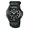 CASIO Mens FT500WVB-5BV Forester Sport Watch: Watches. The mineral crystal window protects this watch from scratches. The Casio Men's Sport Forester Watch combines a sport watch design with earthy, neutral colors. Made with a sturdy resin case and a black stainless steel bezel with brown screw details, this sports watch is ideal for active men. The beige dial features brown Arabic numerals, date function at 3 o'clock, and luminescence. With its beige and black nylon strap and buckle clasp, this watch offers comfortable wear.