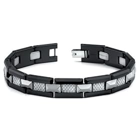 Black Ceramic Tungsten and Grey Carbon Fiber Combination link Bracelet for Men: Peora: Jewelry. This beautiful bracelet measures 8.00 inches in Length and 3/8 inches in Width. A must for any wardrobe this bracelet features a unique combination of Ceramic, Tungsten and Carbon Fiber. This sleek bracelet features watch style links in a stylish pattern. The H shaped Black Ceramic links contain Carbon Fiber accents, the joining links are pyramid shape and made up of Tungsten. Completely scratch-resistant and hypoallergenic, this finely crafted piece includes a Gift Box and makes a perfect gift for Father?s Day, Graduation or just about any Special Occasion.