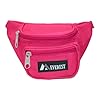 Childrens Fanny Pack by Everest: Clothing. Dimensions are 8 x 3.5 x 2.5 inches. Children's Fanny Pack by Everest. This kid size fanny pack is perfect for carrying a kid's size load in it's two zipper-compartments. Features and Benefits: Made of tough 600-Denier Polyester. Fits up to waist size 38 with an adjustable color-matching strap. Great color selection to accompany any outfit. An outstanding value. Available in Black, Navy, Light Blue, Lilac, Pink, and Red.