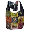 Chronic Color Bohemian Sling Purse Handbag: Clothing. Zipper and button closure, fully lined with an inside zipper pocket. Popular lightweight stonewashed cotton sling handbag with a bohemian torn look. Each handmade bag is fairly traded and uniquely constructed by artisans in Nepal. No two bags are alike and colors on the front will vary slightly. The back of each bag is a stonewashed solid grey/black. Measures 13 inch long x 15 inch wide with a long 24 inch strap. Width of the strap measures 3. Can be worn across the body or over the shoulder. The lightweight cotton allows you to knot the strap if you would like a shorter length. Unique multi-color purse that can be worn with almost any color.