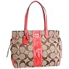 Coach Chelsea Signature Stripe Charlie Satchel Bag 18967 Black White: Clothing. Inside lined in satin and features two side slip pockets and a side zip pocket. A gorgeous Signature jacquard handbag from Coach with leather accents in rich black patent leather. Your new statement bag! The Chelsea Signature Striped Charlie tote is a generously sized shoulder bag in recognizable Coach black and white jacquard fabric. Great looking patent leather stripe down the middle. Coach Heritage logo in silver on the front. Cool leather ties on the side create a handbag silhouette and can be loosened to offer a little more room. Zip top opens with an O ring and tassel in the patent leather. Measures 14 (w) x 11(h) x 4(d).