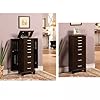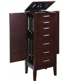 Contemporary Jewelry Armoire (Dark Espresso) (42H x 16W x 13.13D): Home & Kitchen. The side wings inch open to reveal eight hooks on each side for necklace storage. Give your home a touch of distinguished style and add convenient bedroom storage with the Contemporary Jewelry Armoire. This jewelry storage armoire has a sturdy construction; it is made from solid rubberwood, medium density fiberboard (MDF) and particle board. Four large drawers and three smaller drawers offer ample storage for all of your jewelry. Each drawer is accented by a metallic straight-line pull. The drawers and necklace storage areas have soft rayon lining, keeping your treasures scratch free.