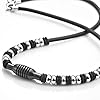 Contemporary Statement: Stainless Steel Bar-link and Rubber Cord Necklace for Men: Peora: Jewelry. Dimensions: Overall Necklace length: 18 inches with a 2 inch extender Width: 1/4 inch. Entirely focused on men, this attention-grabbing Bar Link Necklace sports a Brushed element that complements the steel and rubber inlay detailing. This stunning necklace is constructed from the finest 316L Stainless Steel. You enjoy unmatched durability and strength that is rust and tarnish resistant; affordable luxury is the landmark of this handsome trendsetter and the safety that accompanies hypo-allergenic and biocompatible jewelry is assured. The necklace has an easy-to-wear Lobster Claw closure.