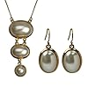 Cream Simulated Pearl and Crystal Earrings and Necklace Set, 18: Jewelry. A wave accented with clear crystals wraps around an elongated cream simulated pearl. The Cream Simulated Pearl and Crystal Earrings and Necklace Set finishes any look with elegance and sophistication.