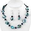 Green Shell and Crystal Necklace and Earrings Set Fashion Jewelry: Jewelry. Comes with matching dangle earrings. Here is a pretty green shell and crystal necklace and earrings set. This shiny piece has natural green colored shells accented perfectly with black faceted crystals! It measures 16 inch long and has a 2 inch extension. Your necklace set will come to you in a foil gift box great for gift giving.